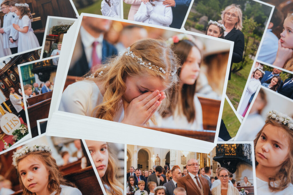 Do 3–4 dni od Komunii uruchamiam galerię internetową, do której rodzice otrzymują link. W ciągu 7 dni od udostępnienia galerii rodzice wybierają swoje zdjęcia. Następnie przygotowuję odbitki na profesjonalnym papierze FUJI Lustre DPII. Termin odbioru zdjęć podaję w galerii – zazwyczaj maksymalnie 3 tygodnie od dnia Komunii.